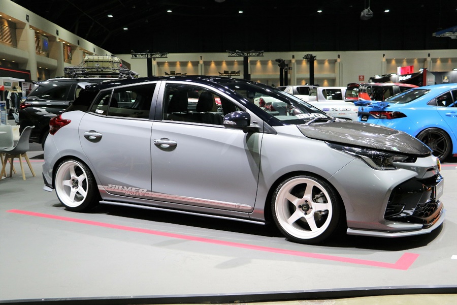YARIS ชุดแต่ง SILVER BULLET ดึงดูดทุกสายตากับชุดแต่งที่มาในสไตล์ USDM ที่ดูเรียบง่าย เน้นไปที่การจัดทรงรถให้มีความสวยงาม สะอาดตา เหมาะกับการเป็นรถใช้งานในเมืองอย่างแท้จริง โดยชุดแต่งประกอบด้วย ฝากระโปรงหน้าคาร์บอน จาก Monza Shop สเกิร์ตรอบคัน สปอยเลอร์ ล้ออัลลอย Comis XT-005R ขนาด 17x7.5 +30 ยาง Cosmis Tire ขนาด 205/45R17 โช้คอัพ Silver Neomax R ท่อไอเสีย จาก BRD และคันเร่งไฟฟ้า จาก ECU=SHOP