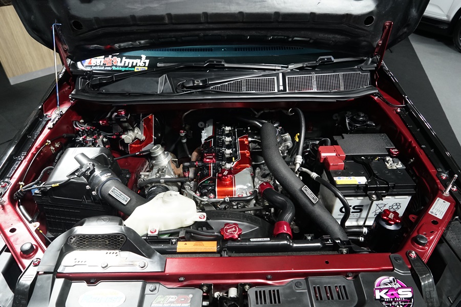 ภายในแต่งด้วยเกจ์วัดจาก Auto Meter มือจับสีแดงจากเอ็ม ธนูทอง เครื่องยนต์โมดิฟายแรงจัดด้วยกล่องพ่วงอัจฉริยะ Ultra Boost จาก ECU SHOP เทอร์โบโมดิฟายด์ แคมซิ่ง ไอดี-ไอเสียอินเตอร์คูลเลอร์โมดิฟาย และกรองอากาศ จาก Flex ให้มีแรงม้าเพิ่มขึ้นจากเดิม 190 แรงม้า เป็น 300 แรงม้า รวมมูลค่าชุดแต่ง 600,000 บาท