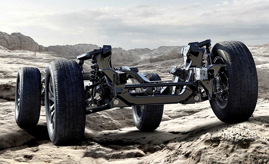 มาถึงช่วงล่างที่มีการปรัลปรุงให้ใหญ่และดีขึ้น ทั้งเฟรมใหม่ แชสซีส์ใหม่ ซึ่งคาดว่ามีขนาดกว้างและยาวขึ้นไปอีก พร้อมทั้งแข็งแรงในการลุยหรือบรรทุกงานหนัก แต่ก็ต้องมีความยืดหยุ่นให้ตัวได้ดีเวลาสะเทือนหรือการเข้าโค้ง มาพร้อมกับห้องโดยสารดีไซน์ใหม่
