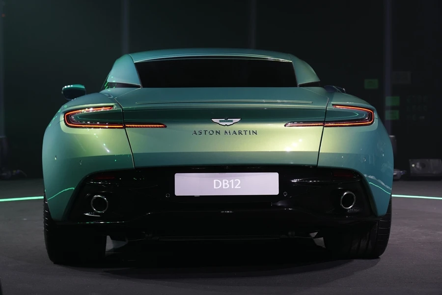 ตัวถังดีไซน์ใหม่ กว้างและดูดุดันยิ่งขึ้น เน้นจุดเด่นของ แอสตัน มาร์ติน ด้วยกระจังหน้าแบบ single vaned ที่มีความโดดเด่น และเป็นเอกลักษณ์เฉพาะของรุ่น DB โดยมีขนาดใหญ่ขึ้นถึง 56% (เทียบกับ DB11 V8) เพื่อรองรับพละกำลังของ แอสตัน มาร์ติน DB12 กันชนหน้าดีไซน์ใหม่ พร้อมแผ่นรีดอากาศด้านหน้า (front splitter) โลโก้สัญลักษณ์ (Aston Martin Wing Badge) แบบใหม่ โดดเด่นยิ่งขึ้น และเป็นการนำมาติดตั้งบน แอสตัน มาร์ติน DB12 เป็นรุ่นแรก พร้อมช่องระบายอากาศบนฝากระโปรง เพื่อระบายความร้อนจากเครื่องยนต์และเทอร์โบคู่ ที่อยู่บริเวณกลางห้องเครื่อง ไฟหน้าแอลอีดี พร้อมเดย์ไทม์รันนิงไลท์แบบใหม่ (6-block pattern) กระจกข้างทรงสปอร์ตไร้กรอบ เพิ่มประสิทธิภาพการยึดเกาะช่วงความเร็วสูง ด้วยระบบแอโรไดนามิกส์ ‘Aeroblade’ โดยใช้หลักอากาศพลศาสตร์ในการสร้างแรงกด พร้อมสปอยเลอร์หลังแบบอัตโนมัติ รวมไปถึงความประทับใจใหม่ กับ "Presenting Door Handles" เมื่อกดปุ่มปลดล็อกบนกุญแจรีโมท มือจับประตูจะเปิดขึ้นอัตโนมัติ ช่วยให้จับ