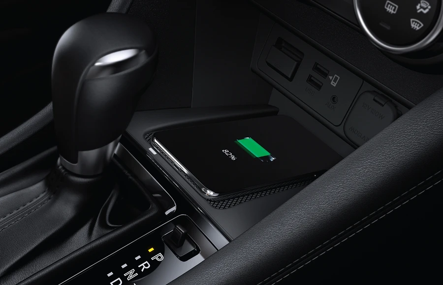 New Mazda CX-3 ช่วยให้ผู้ขับขี่และผู้โดยสารสนุกสนานเพลิดเพลินกับไลฟ์สไตล์ที่หลากหลาย และไม่พลาดทุกการติดต่อ ด้วยเทคโนโลยีการเชื่อมต่อไร้ขีดจำกัดกับ Mazda Connect ที่รองรับ Apple CarPlay® และ Android AutoTM โดยแสดงข้อมูลผ่านหน้าจอสี Center Display แบบทัชสกรีน ขนาด 7 นิ้ว มอบความสะดวกสบายด้วยอุปกรณ์ชาร์จไฟแบบไร้สาย Wireless Charger
