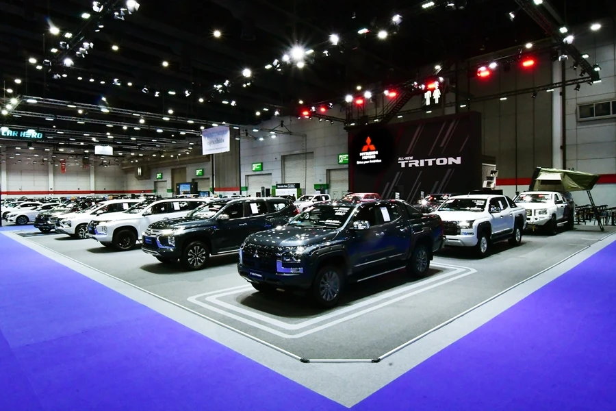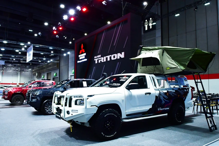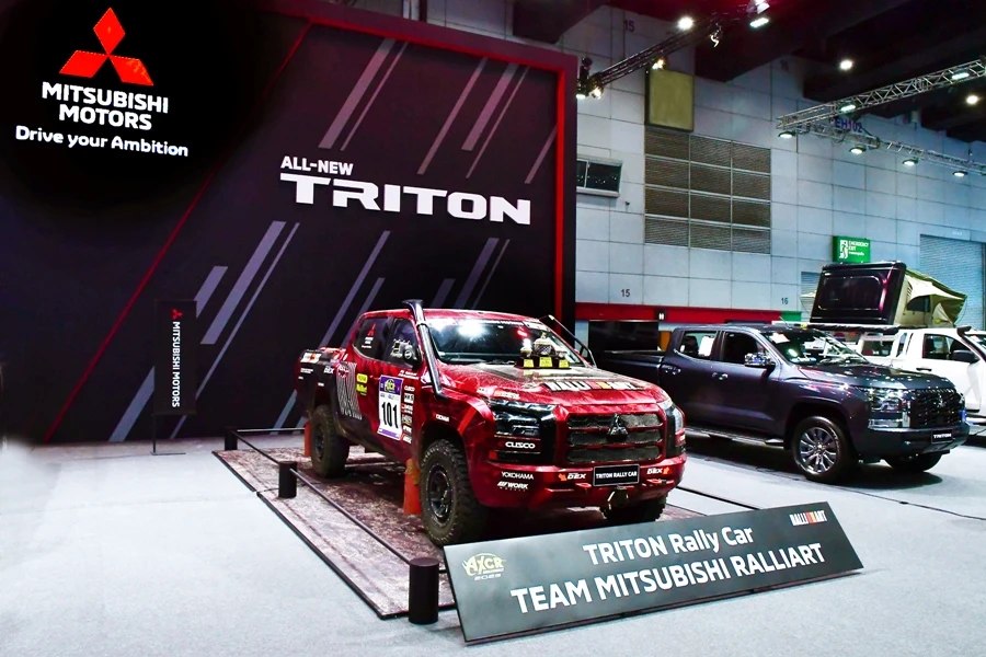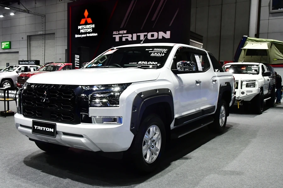 หนึ่งในรุ่นย่อยที่ได้รับการจัดแสดงคือ ออล-นิว มิตซูบิชิ ไทรทัน รุ่นดับเบิ้ล แค็บ พลัส 2.4 อัลตร้า เกียร์อัตโนมัติ โดดเด่นด้วยตัวถังที่แข็งแกร่งบึกบึน สไตล์เส้นสายแนวราบ และการผสมผสานไฟส่องสว่างเวลากลางวันแบบ LED เข้ากับไฟส่องสว่างหน้าแบบมัลติโปรเจคเตอร์ LED เพื่อความทันสมัยและทรงพลัง ภายในห้องโดยสารไม่เพียงมีระบบชาร์จไร้สาย ยังมีเครื่องเสียงหน้าจอสัมผัสคมชัดระดับ Full HD ขนาด 9 นิ้ว รองรับการเชื่อมต่อ Apple CarPlay แบบไร้สาย และ Android Auto เสริมสมรรถนะการขับขี่ด้วยระบบลิมิเต็ดสลิปที่เฟืองท้าย แบบควบคุมด้วยเบรก(Limited Slip Differential – Brake Control Type) ระบบความปลอดภัยเพียบพร้อมด้วยถุงลม 7 ตำแหน่ง ระบบควบคุมเสถียรภาพการทรงตัว (Active Stability Control: ASC) และระบบป้องกันล้อหมุนฟรีและควบคุมการลื่นไถล (Traction Control System: TCL) รวมถึงระบบเบรกแบบป้องกันล้อล็อก (Anti-lock Braking System: ABS) ระบบกระจายแรงดันน้ำมันเบรกแบบอิเล็กทรอนิกส์ (Electronic Brakeforce Distribution: EBD) และระบบเสริมแรงเบรก (Brake Assist: BA) นอกจากนี้ยังมีระบบช่วยออกตัวบนทางลาดชัน (Hill-Start Assist: HSA) และระบบความปลอดภัยขั้นสูง ‘DIAMOND SENSE’ ประกอบด้วยระบบเตือนการชนด้านหน้าตรง พร้อมระบบช่วยชะลอความเร็ว (Forward Collision Mitigation: FCM) ระบบปรับระดับไฟสูง-ต่ำอัตโนมัติ (Auto High Beam: AHB) ระบบสัญญาณเตือนจุดอับสายตา พร้อมระบบเตือนขณะเปลี่ยนเลน (Blind Spot Warning with Lane Change Assist: BSW with LCA) ระบบเตือนด้านหลังขณะถอยออกจากช่องจอด (Rear Cross Traffic Alert: RCTA) และกล้องมองภาพรอบคัน (Multi Around Monitor: MAM)