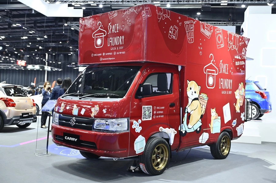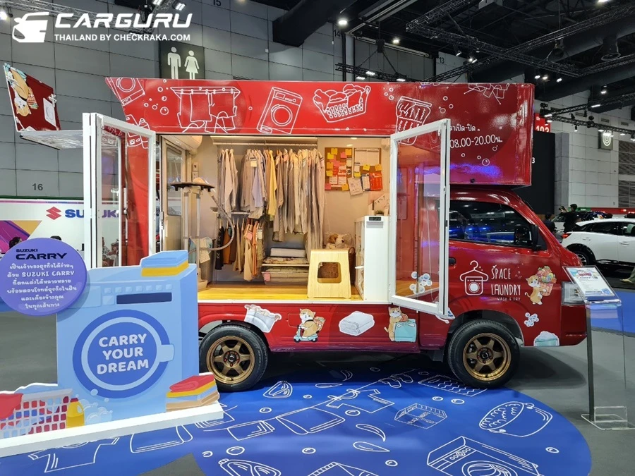 สำหรับโซนการจัดแสดงรถตกแต่งพิเศษ ยังคงคับคั่งไปด้วยไอเดียการตกแต่งที่หลากหลาย นำเสนอแนวทางสำหรับลูกค้าที่ชื่นชอบการตกแต่งรถที่ไม่เหมือนใคร ในครั้งนี้ซูซูกิภูมิใจเสนอ การนำ SUZUKI CARRY รถกระบะบรรทุกอเนกประสงค์มาตกแต่ง ภายใต้แนวคิด Laundry Carry เพื่อสร้างแรงบันดาลใจให้แก่ผู้ประกอบการธุรกิจซัก อบ รีด และยังมุ่งหวังที่จะจุดประกายให้เกิด การขยายเส้นทางธุรกิจให้เติบโต ไปจนถึงผู้ที่กำลังสนใจอยากสร้างอาชีพในยุคใหม่ เนื่องจากปัจจุบัน ธุรกิจรับซักรีด กำลังมีทิศทางการเติบโตที่ดีและมีการขยายตัวเป็นอย่างมาก เพราะสามารถตอบโจทย์การใช้ชีวิตของคนรุ่นใหม่ที่ใช้ชีวิตเร่งรีบ ต้องการลดภาระในครัวเรือนลง จึงกลายมาเป็นอีกหนึ่งธุรกิจที่น่าสนใจ ซึ่งที่ผ่านมา SUZUKI CARRY มีบทบาทสำคัญในการต่อยอดให้กับเจ้าของธุรกิจ ด้วยการเลือกใช้งานรถยนต์ SUZUKI CARRY ในการให้บริการรับส่งเสื้อผ้าซักรีดถึงมือลูกค้า ช่วยยกระดับงานบริการของผู้ประกอบการให้เข้าถึงผู้บริโภคให้จนได้รับความสะดวกสบายมากขึ้น