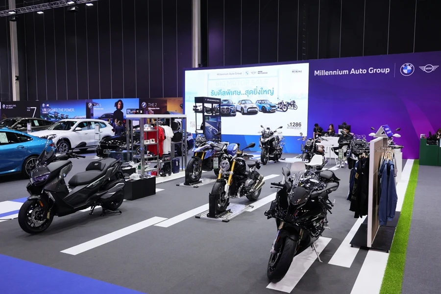 บีเอ็มดับเบิลยู มอเตอร์ราด มิลเลนเนียม ออโต้ นำความเร้าใจมาให้สัมผัส กับมอเตอร์ไซค์รุ่นยอดนิยม อาทิ S 1000 RR, C 400 GT, CE 04 มอเตอร์ไซต์ไฟฟ้า 100%, สายลุย อาทิ F 850 GS, F 900 XR, R 1250 GS, R 1250 GSA และมอเตอร์ไซต์สุดคลาสสิคอย่าง R 18 Roctane พร้อมข้อเสนอสุดคุ้มค่า สำหรับลูกค้าที่จองภายในงาน