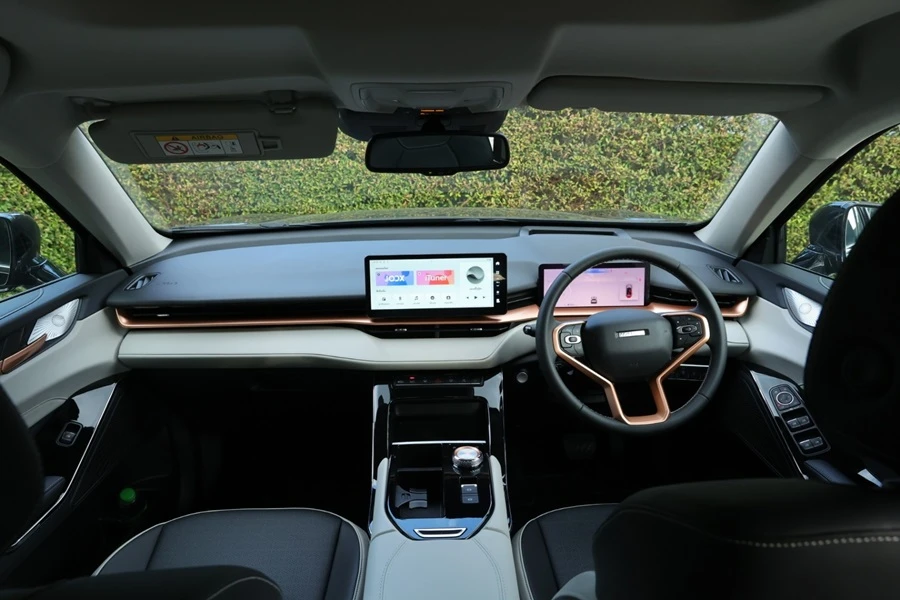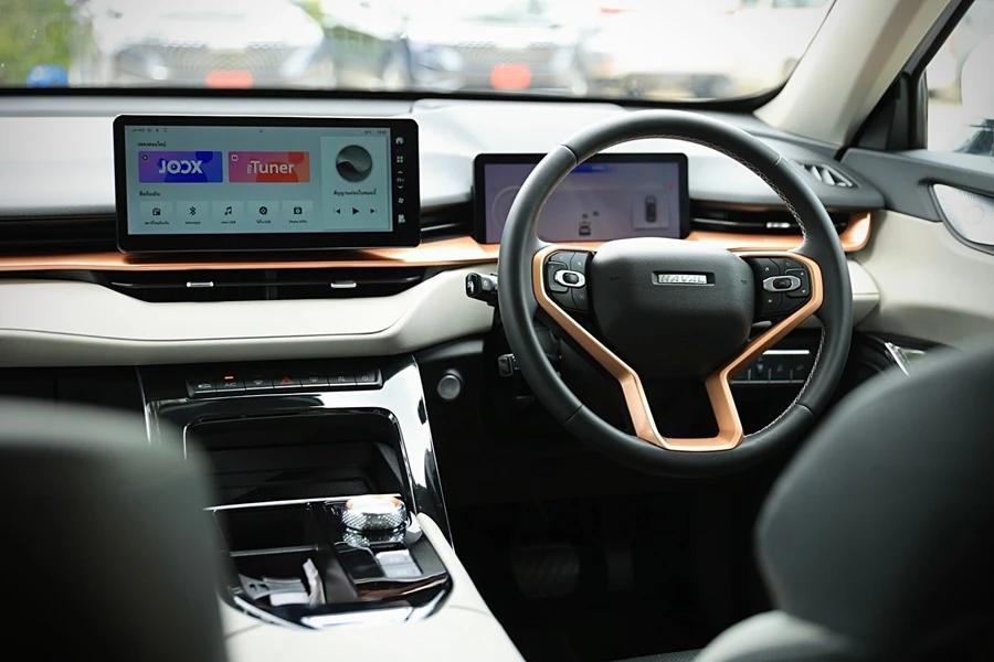 ส่วนภายในของ New HAVAL H6 Hybrid SUV ยังคงมากับสไตล์ Minimalist ที่ให้ความกว้าง, สะดวกสบาย และใส่ใจทุกรายละเอียด เริ่มด้วยคอนโซลหน้าสีทูโทน ตกแต่งด้วยวัสดุสี Rose Gold, Silver, Piano Black, Chrome ให้ความโมเดิร์นในสไตล์ Futuristic