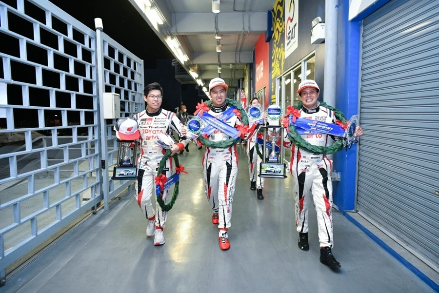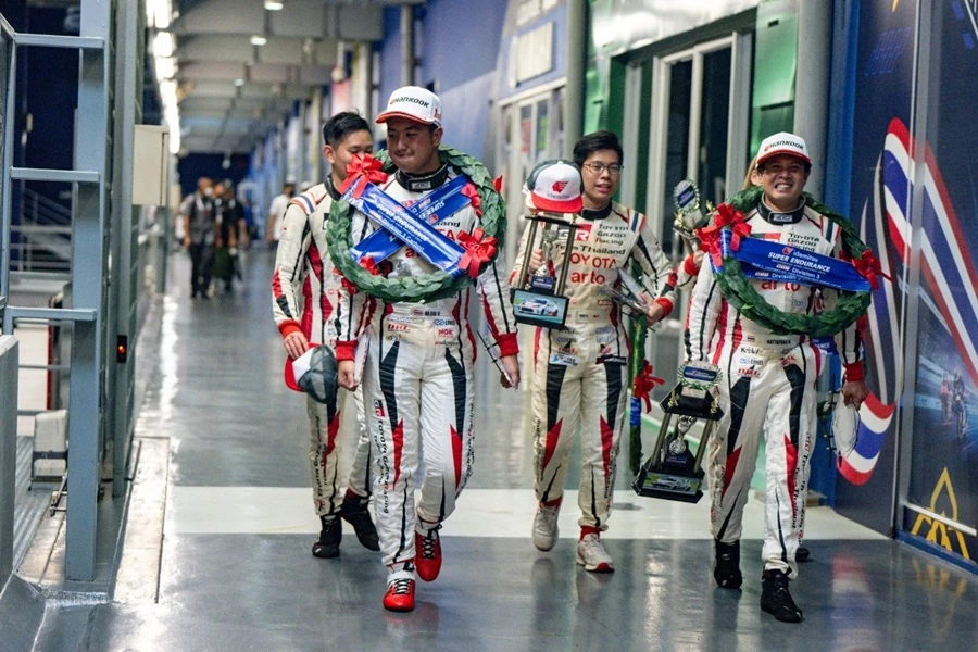Toyota Gazoo Racing Team Thailand ทีมแข่งรถสุดแกร่งดีกรีแชมป์โลก 4 สมัย ในการแข่งขันรถยนต์มาราธอนระดับโลก 24 ชม.นูร์เบอร์กริง ภายใต้การสนับสนุนของ บริษัท โตโยต้า มอเตอร์ ประเทศไทย จำกัด สร้างผลงานยอดเยี่ยมอีกครั้ง ด้วยการจัดทีมนักแข่งชุดใหญ่ลงร่วมการแข่งขัน IDEMITSU SUPER ENDURANCE SOUTHEAST ASIA TROPHY 2023 ประเดิม 2 เรซ เปิดฤดูกาลจัดรถแข่งตัวฉกาจ และรถรุ่นใหม่ ไฮไลต์กับ 2 รถแข่ง e-fuel รถยนต์พลังงานสะอาดที่พัฒนาอย่างต่อเนื่องลงสู้ศึกความอึด ท็อปฟอร์มรับธงหมากรุกคว้าอันดับ 1-2-3-4-5 ยึดโพเดียมแบบ Overall และแชมป์อันดับ 1 รุ่น D2 - D3 และ Lady One Make Race เมื่อวันที่ 2-3 กันยายน ที่ผ่านมา ณ สนามช้าง อินเตอร์เนชั่นแนล เซอร์กิต บุรีรัมย์