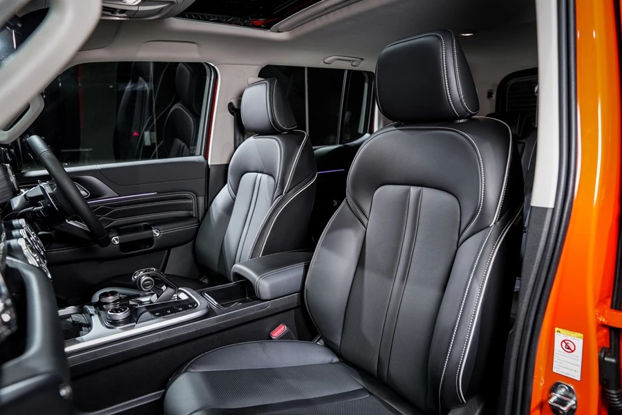 All New GWM TANK 300 HEV มาพร้อมกับเบาะนั่งปรับไฟฟ้าคู่หน้า เบาะผู้ขับขี่สามารถปรับไฟฟ้าได้ 8 ทิศทางและมีระบบเบาะนวดไฟฟ้า ระบบดันหลังไฟฟ้า ระบบ Memory Seat ระบบ Welcome Seat เพื่อเพิ่มความสะดวกให้กับผู้ขับขี่ในการขึ้น-ลงจากรถ และระบบระบายอากาศ เบาะผู้โดยสารด้านหน้าปรับไฟฟ้าได้ 4 ทิศทาง และเบาะนั่งโดยสารแถวที่ 2 พร้อมพนักพิงปรับ 2 ระดับ ซึ่งเบาะนั่งโดยสารแถวที่ 2 สามารถแยกพับเบาะได้แบบ 60:40 เพื่อช่วยเพิ่มพื้นที่การใช้สอยตามความต้องการ