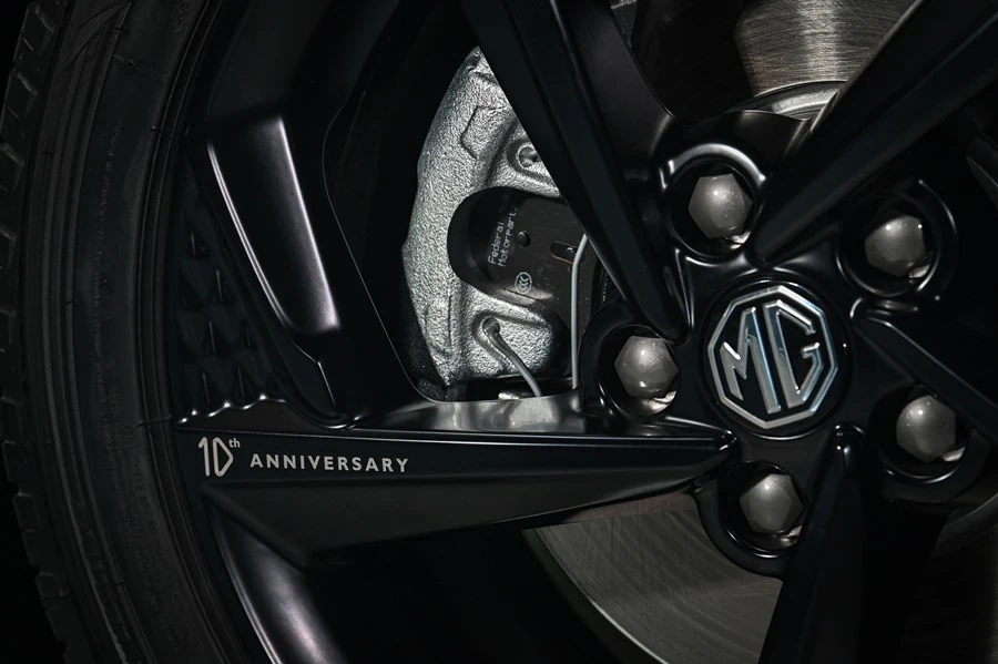 สำหรับเอกลักษณ์เฉพาะที่บ่งบอกตัวตนใหม่ของ New MG5 10th Anniversary Special Edition ด้วยตัวถังสีเทาใหม่ Crayon Grey มีการเพิ่มโลโก้ 10th Anniversary ที่บอกถึงความเป็นรุ่นพิเศษฉลองครบรอบ 10 ปี ที่ฝากระโปรงท้าย และบริเวณล้ออัลลอยขนาด 17 นิ้ว อีกทั้งยังเลือกใช้ สีดำ ในการเพิ่มลุคสปอร์ตหลากหลายตำแหน่งรอบคัน ดังนี้