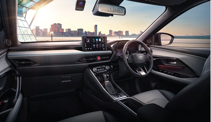 - การออกแบบภายในแบบ ROOMY x SPORTY เน้นภาพรวมห้องโดยสารกว้างขวาง สบายตา โดยใช้หลักเส้นนำสายตาที่เป็นเส้นตรงลากยาวบริเวณคอนโซลด้านหน้า เสริมดีกรีความสปอร์ตด้วยการออกแบบที่นั่งฝั่งผู้ขับขี่ให้มีดีไซน์แบบ Driver-Oriented Cockpit เพิ่มความพรีเมียมด้วยการตกแต่งภายในด้วยวัสดุบุนุ่ม วัสดุหุ้มเบาะนั่ง พร้อมเทคโนโลยี QUOLE MODULE ® ช่วยลดการสะสมความร้อนบนผิวสัมผัส ไฟสร้างบรรยากาศภายในห้องโดยสารปรับได้ 14 เฉดสี ปรับความสว่างได้ 4 ระดับ และหน้าจอแสดงผลข้อมูลการขับขี่แบบดิจิตอลขนาด 7 นิ้ว