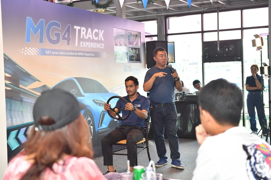 “ด้วยดีไซน์สปอร์ตโฉบเฉี่ยวของรถ NEW MG4 ELECTRIC ที่มาพร้อมกับสมรรถนะที่ดี กับจุดเด่นของรถที่มีระบบขับเคลื่อนล้อหลัง ฐานล้อกว้าง ทำให้เกาะถนนได้ดี เข้าโค้งได้อย่างเฉียบคม ช่วงล่างอิสระ 4 ล้อ แบบ 5-LINK SUSPENSION ถือเป็นอีวีที่ขับสนุกและเร้าใจ มาพร้อมกับระบบความปลอดภัยที่ครอบคลุมสำหรับการขับขี่ กิจกรรมในครั้งนี้ ถือเป็นครั้งแรกที่ได้เอารถคันโปรดจากที่ใช้ขับบนท้องถนนมารีดสมรรถนะแบบเต็มๆ บนสนาม ถือเป็นการเพิ่มประสบการณ์การขับขี่และการใช้รถคันนี้ให้ได้ดียิ่งขึ้น”