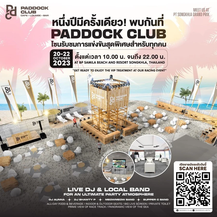 ขณะเดียวกัน ยังมีเนรมิตร Paddock Club ที่บริเวณโรงแรม บีพี สมิหลา บีช ด้วยการออกแบบเครื่องดื่มที่เป็น Signature Drink ของ พีที สงขลา กรังด์ปรีซ์ เพื่อให้ทุกคนได้ซึมซับอรรถรสของการรับชมการแข่งขันรถยนต์ได้อย่างเต็มที่