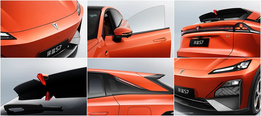 Deepal S7 เป็นรถยนต์ไฟฟ้าในตัวถังแบบเอสยูวีมาพร้อมกับการออกแบบที่ทันสมัย ดีไซน์ภายนอกมาพร้อมกับไฟหน้า, ไฟ Daytime Running Light และท้ายที่เชื่อมกันจากทั้ง 2 ฝั่ง เป็น LED ถึงแม้จะมีขนาดค่อนข้างเล็กแต่ก็เพียงพอที่จะให้ความสว่าง ตัวรถจะมาพร้อมมิติตัวถังอยู่ที่ ยาว 4,750 มม., กว้าง 1,930 มม. และสูง 1,625 มม. มือจับประตูเป็นแบบซ่อนไปกับตัวถัง ด้านกันชนหน้าช่วยเน้นให้ดูสปอร์ตมากขึ้น โดยจะไม่มีส่วนของกระจังหน้าตามแบบของรถยนต์ไฟฟ้า และล้ออัลลอยขนาด 21 นิ้ว