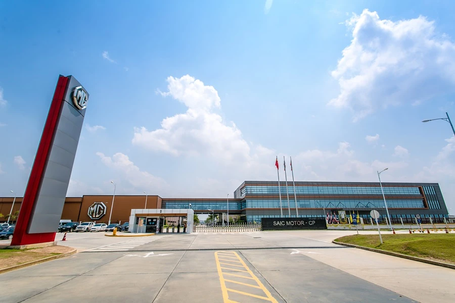 บริษัท เอสเอไอซี มอเตอร์-ซีพี จำกัด ก่อตั้งขึ้นเพื่อผลิตรถยนต์ เอ็มจี และจำหน่ายภายในประเทศไทย รวมทั้งการส่งออกไปจำหน่ายยังประเทศต่างๆ ในภูมิภาคอาเซียน โดยโรงงานตั้งอยู่ที่นิคมอุตสาหกรรมดับบลิวเอชเอ อีสเทิร์นซีบอร์ด 2 (WHA ESIE 2) จังหวัดชลบุรี บนพื้นที่กว่า 437.5 ไร่ มีกำลังการผลิตสูงสุดอยู่ที่ 100,000 คันต่อปี ประกอบด้วย โรงงานประกอบตัวถัง (General Assembly Shop), โรงงานพ่นสีรถยนต์ (Paint Shop), โรงผลิตตัวถัง (Body Shop) ซึ่งไลน์ผลิตทั้งหมดประกอบไปด้วยเทคโนโลยีการติดตั้งหุ่นยนต์สำหรับใช้ในสายการผลิต เพื่อช่วยอำนวยความสะดวก เพิ่มประสิทธิภาพ ตลอดจนการควบคุมคุณภาพ และเสริมสร้าง ความปลอดภัยในสายการผลิต อีกทั้งยังช่วยลดปริมาณการใช้พลังงานและมลพิษต่างๆ เพื่อความเป็นมิตรกับสิ่งแวดล้อม โดยนอกจากไลน์การผลิตแล้วภายในพื้นที่ดังกล่าวยังเป็นคลังจัดเก็บอะไหล่เพื่อรองรับรถยนต์ของเอ็มจี ทุกรุ่น