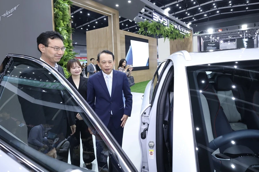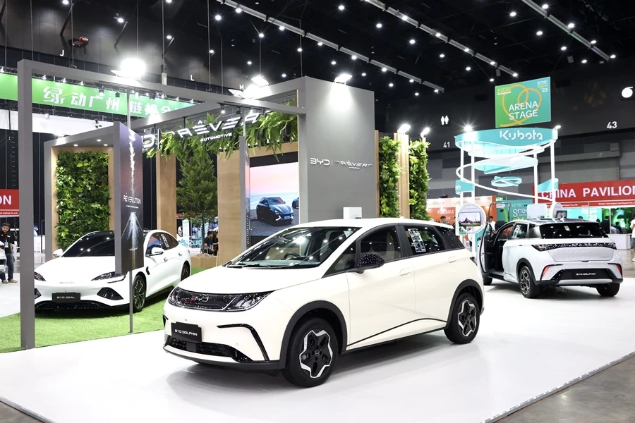 คุณโจว เซี๋ย ผู้ช่วยผู้จัดการทั่วไป บริษัท บีวายดี ออโต้ (ประเทศไทย) จำกัด พร้อมด้วย นายวิศิษฎ์ พิทยะวิริยากุล กรรมการผู้จัดการ บริษัท เรเว่ ออโตโมทีฟ จำกัด นำทัพรถยนต์ไฟฟ้า BYD โชว์สุดยอดเทคโนโลยียานยนต์แห่งอนาคต พร้อมเทคโนโลยีขั้นสูงที่ช่วยประหยัดพลังงานและเป็นมิตรกับสิ่งแวดล้อม ในงาน 2023 GREEN TECHNOLOGY EXPO ณ ศูนย์นิทรรศการและการประชุมไบเทค (BITEC) บางนา