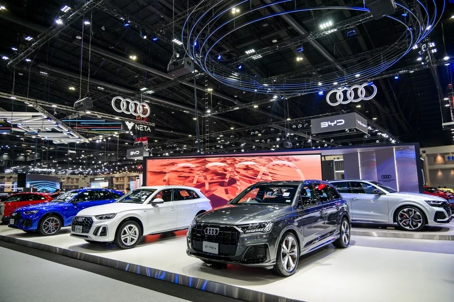 พร้อมยกทัพรถ Plug-in Hybrid เทคโนโลยีไฟฟ้าล่าสุด มาแสดงอย่างครบครัน ซึ่งเป็นการผสมผสานความก้าวล้ำทางเทคโนโลยีของ Audi ด้วยการนำข้อดีของการขับเคลื่อนด้วยพลังงานไฟฟ้าและเทคโนโลยีการขับเคลื่อนแบบสันดาปมารวมกัน เทคโนโลยี PHEV ที่ลงตัวกับการใช้งานใน A7 55 TFSI e แรง ขับสนุก ขุมพลังกว่า 367 แรงม้า วิ่งได้ไกลถึง 69 กิโลเมตร ด้วยไฟฟ้าล้วน และใช้เวลาชาร์จเพียง 2 ชั่วโมง เท่านั้น พร้อม Plug-in hybrid ในตระกูล SUV ไม่ว่าจะเป็น Q5 55 TFSI e quattro SUV ขนาดที่ลงตัวกับครอบครัวยุคใหม่ Q7 60 TFSI e quattro S line Black Edition และ Q8 60 TFSI e quattro S line Black Edition