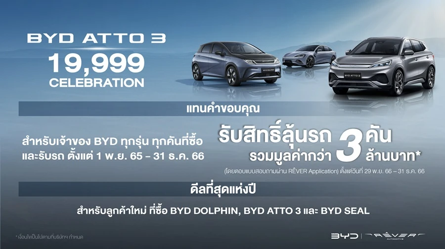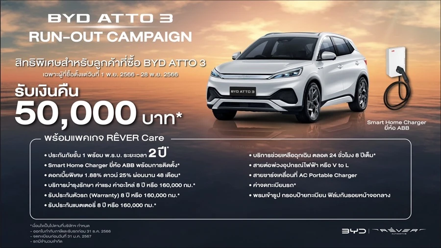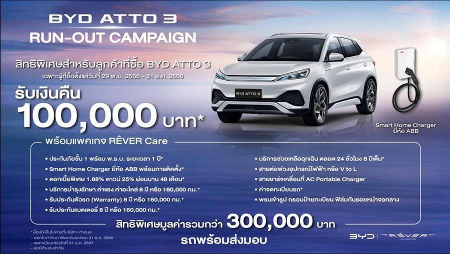- แคมเปญส่งเสริมการขาย สำหรับรถยนต์ไฟฟ้า BYD ATTO 3