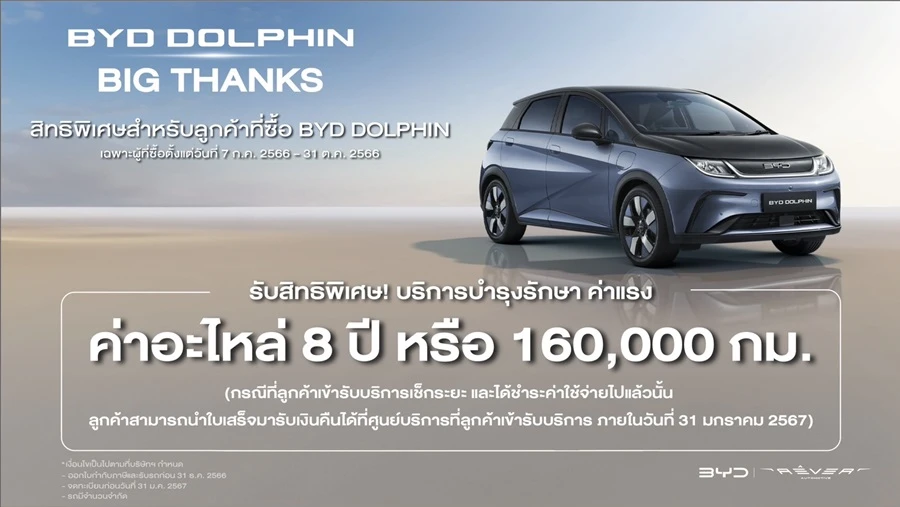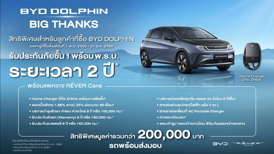 - แคมเปญส่งเสริมการขาย สำหรับรถยนต์ ไฟฟ้า BYD DOLPHIN
