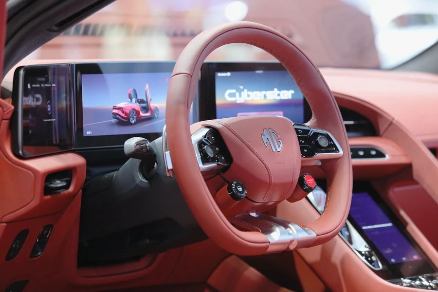 ภายในห้องโดยสารให้ลุคสปอร์ตด้วยการใช้สีแดง Wine-red วัสดุคุณภาพระดับพรีเมียม พร้อมระบบการเชื่อมต่อด้วยเทคโนโลยีอัจฉริยะมากมายมอบความความรู้สึกแห่งการขับขี่รถสปอร์ตสไตล์ Convertible โดยรุ่นที่ปรากฏตัวภายในงานเป็นรุ่นพวงมาลัยซ้าย มอเตอร์คู่ 544 แรงม้า แรงบิดสูงสุดที่ 725 นิวตันเมตร สามารถทำอัตราเร่ง 0-100 กิโลเมตร/ชั่วโมง ภายใน 3.2 วินาที แบตเตอรี่ความจุ 77 kWh ช่วงล่างด้านหน้าอิสระปีกนกคู่และหลังอิสระมัลติลิงค์ ทั้งนี้ เอ็มจี ได้เปิดโอกาสให้ผู้สนใจสามารถจองสิทธิ์เป็นเจ้าของรถสปอร์ตโรดสเตอร์ไฟฟ้ารุ่นนี้ได้อีกครั้ง ภายใต้แคมเปญ MG CYBERSTER Prestige Reservation โดยสามารถทำการจองผ่านช่องทางออนไลน์เท่านั้น* ที่ bit.ly/MGPrestigeReservation (ไม่รับจองที่ศูนย์บริการทุกสาขา) ตั้งแต่วันที่ 29 พฤศจิกายน ถึง 31 ธันวาคม 2566 ด้วยเงื่อนไข จอง 10,000 บาท สามารถแลกรับส่วนลดได้ 50,000 บาท