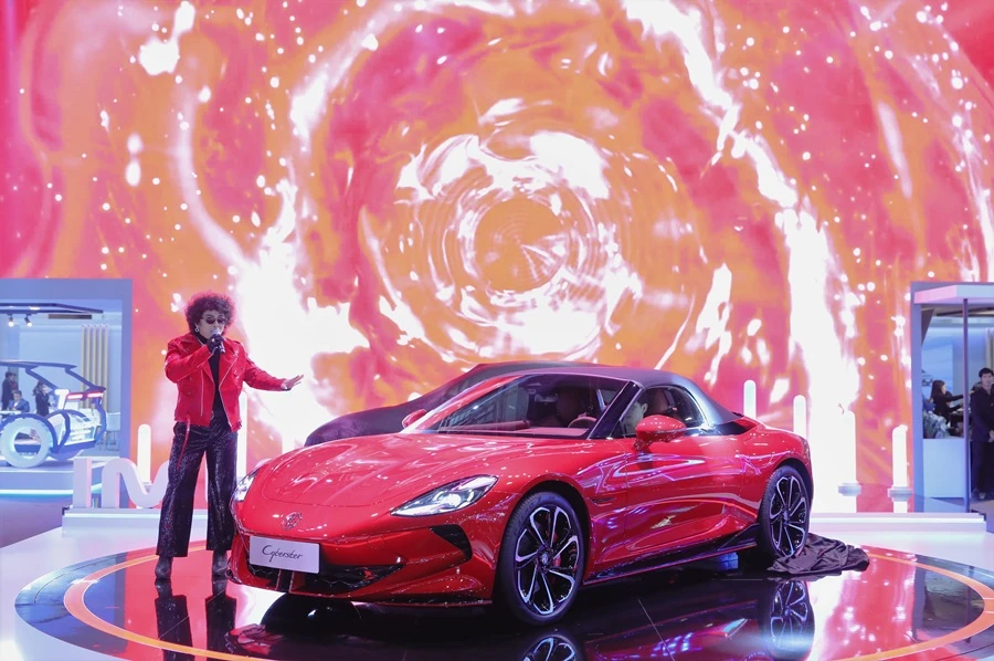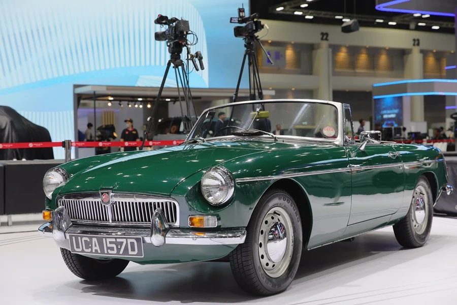 งาน มหกรรมยานยนต์ ครั้งที่ 40 หรือ Thailand International Motor Expo 2023 ในครั้งนี้ ถือเป็นอีกหนึ่งความเคลื่อนไหวครั้งสำคัญช่วงปลายปีของ เอ็มจี โดยในปีนี้ เอ็มจี ได้นำนวัตกรรมยานยนต์ที่สะท้อนความก้าวล้ำของเทคโนโลยีและงานดีไซน์แห่งโลกอนาคตมาจัดแสดงเป็นยนตรกรรมไฮไลท์ กับครั้งแรกในประเทศไทย และในภูมิภาคอาเซียนของ MG CYBERSTER รถสปอร์ตโรดสเตอร์พลังงานไฟฟ้า 100% รุ่นแรกซึ่งสร้างสรรค์ ให้มีความลงตัวของงานดีไซน์และสมรรถนะอันทรงพลัง รังสรรค์เป็นโรดสเตอร์พลังงานไฟฟ้าแบบเปิดประทุน 2 ที่นั่ง โดดเด่นด้วยประตูปีกนก (Scissor Doors) แบบปุ่มสัมผัสเปิด-ปิด