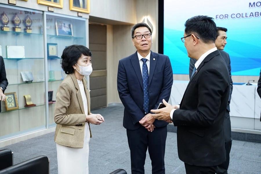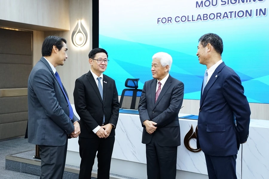 ในรูปจากซ้ายไปขวา : มร. ที. ฮาตะ กรรมการผู้จัดการ บริษัท ตรีเพชรอีซูซุเซลส์ จำกัด, ดร.บุรณิน รัตนสมบัติ ประธานเจ้าหน้าที่ปฏิบัติการกลุ่มธุรกิจใหม่และโครงสร้างพื้นฐาน บริษัท ปตท. จำกัด (มหาชน) และ มร. เอส. วากะบายาชิ รองประธานบริหารและประธานเจ้าหน้าที่บริหารกลุ่มธุรกิจยานยนต์และโมบิลิตี้ บริษัท มิตซูบิตชิ คอร์ปอเรชั่น (ประเทศญี่ปุ่น)