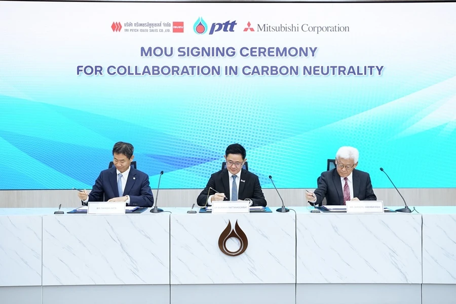 บริษัท ตรีเพชรอีซูซุเซลส์ จำกัด, บริษัท มิตซูบิชิคอร์ปอเรชั่น (ประเทศญี่ปุ่น) และบริษัท ปตท.จำกัด (มหาชน) ลงนามในบันทึกข้อตกลงความร่วมมือพัฒนาโครงการทดสอบรถยนต์กับพลังงานสะอาดเพื่อมุ่งสู่ความเป็นกลางทางคาร์บอน