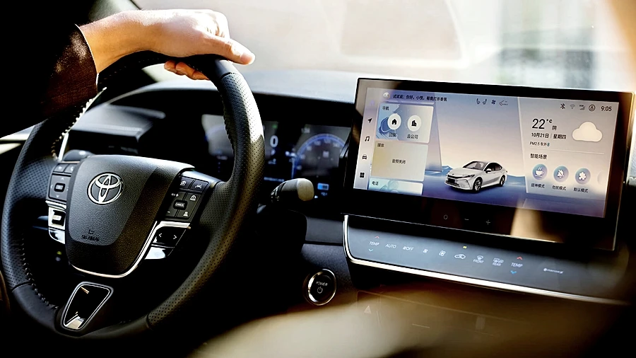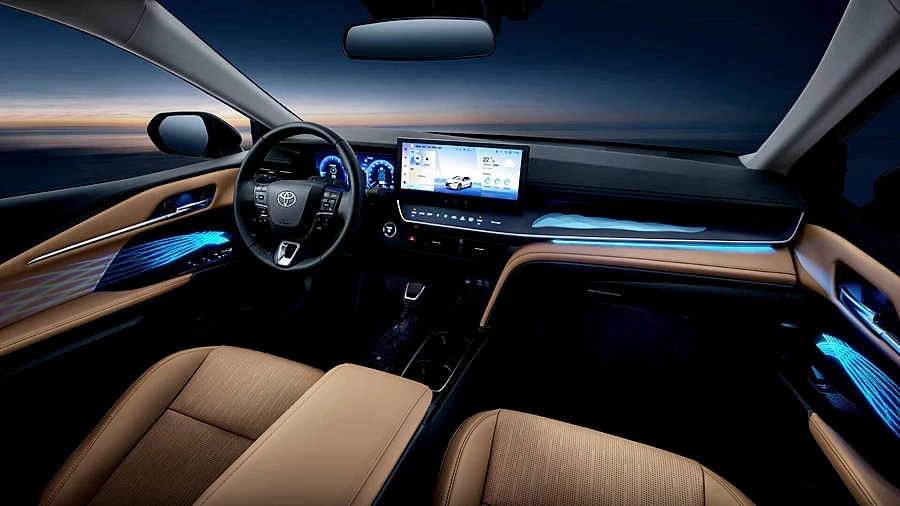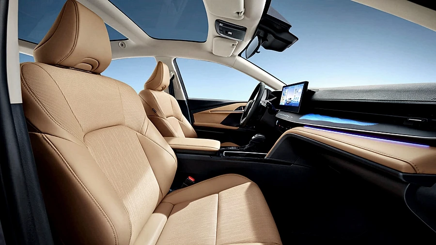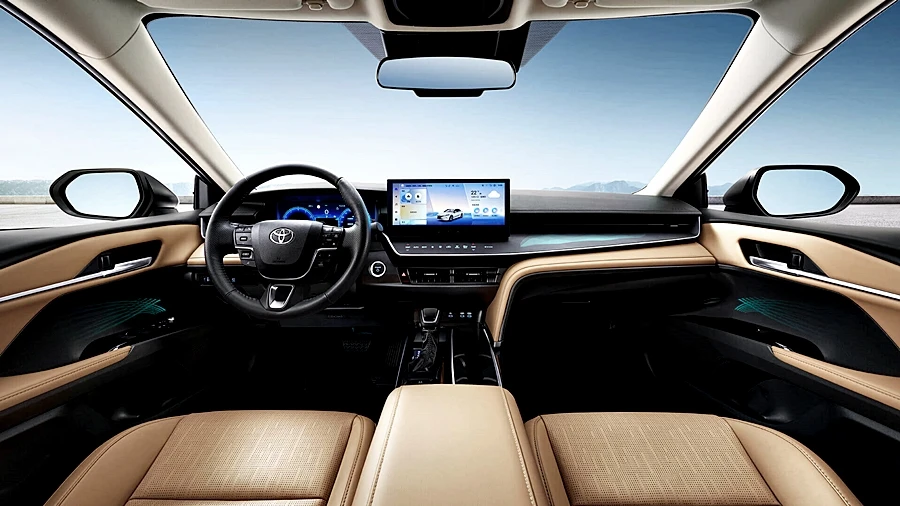 ภายในเปลี่ยนใหม่ให้ดูล้ำหน้าด้วยคอนโซลหน้าใหม่ ชุดมาตรวัดแบบจอสีแบบเต็มระบบ พร้อม HUD สะท้อนกระจกหน้าขนาดใหญ่ จอกลางเหมือนในรถสัญชาติจีนแบบบางเฉียบประมาณ 10.25 นิ้ว ระบบประมวลผล Qualcomm Snapdragon 8155 ความเร็ว 12GB และ RAM 128G ระบบจดจำใบหน้า 3 มิติ และการปลดล็อคฟังก์ชั่นต่าง ๆ อัตโนมัติ รองรับคำสั่งเสียง และควบคุมสั่งการระบบต่าง ๆ ของตัวรถ เช่น ระบบแอร์ นำทาง การแจ้งเตือน เปิด-ปิดระบบควาใปลอดภัย ฯลฯ บนจอเดียวได้เลย ระบบปุ่มสัมผัสสั่งงานใต้จอกลาง ไฟสร้างบรรยากาศปรับได้ 64 สี พร้อมระบบควมคุมและเปลี่ยนกลิ่น "น้ำหอม" อัตโนมัติ และมาพร้อมระบบความปลอดภัยจัดเต็มเช่นเดิมกับ Toyota Saftysence