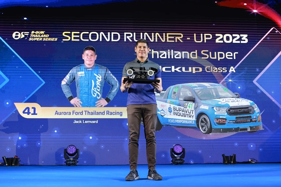 แจ็ค เลมวาร์ด นักแข่งมืออาชีพ ลูกครึ่งไทย-เดนมาร์ก ลงแข่งในนามทีมออโรร่า ฟอร์ด ไทยแลนด์ เรซซิ่ง ได้รับรางวัล Second Runner-up 2023 ในรุ่น Thailand Super Pick Up – Class A