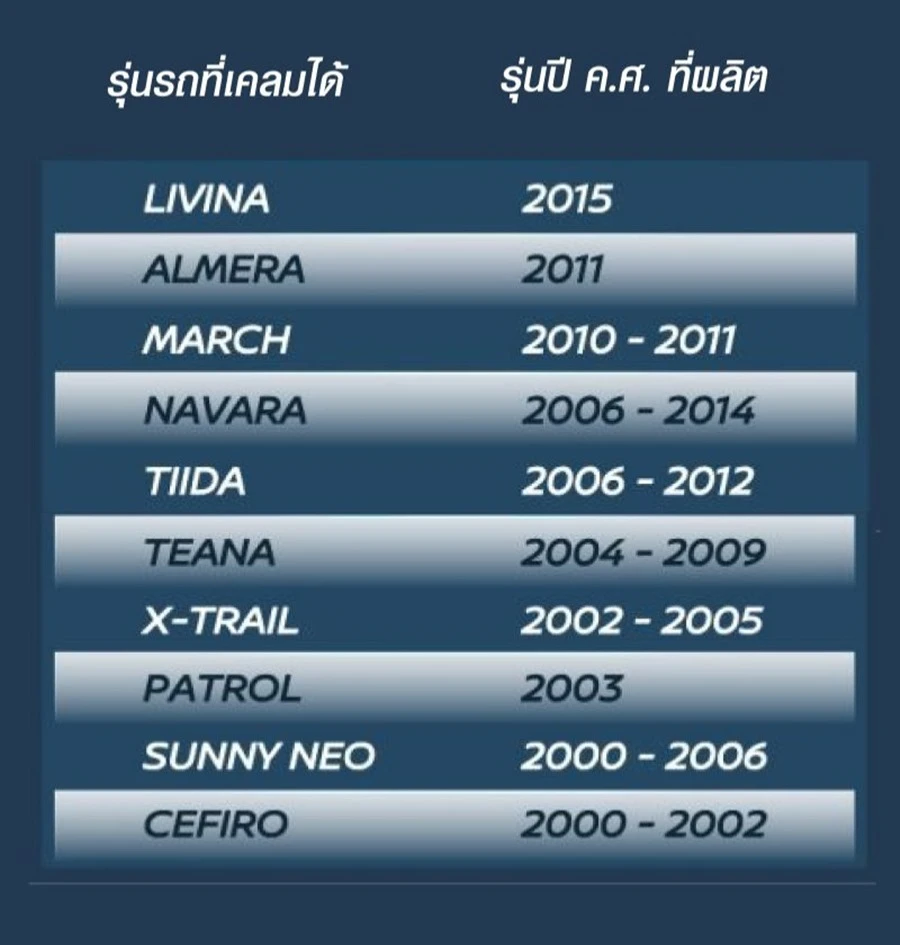 สำหรับลูกค้าที่เข้าข่าย กรุณาติดต่อผู้จำหน่าย หรือนิสสัน คอลเซ็นเตอร์ เพื่อนัดหมายเข้ารับบริการโดยเร็ว เพื่อความปลอดภัยในการขับขี่ โดยลูกค้าที่อยู่ในเขตกรุงเทพฯและปริมณฑล ติดต่อที่หมายหมายเลข 02 401 9600 และสำหรับพื้นที่ต่างจังหวัด ติดต่อที่หมายเลข 1-800-900-500 ตลอด 24 ชั่วโมง
