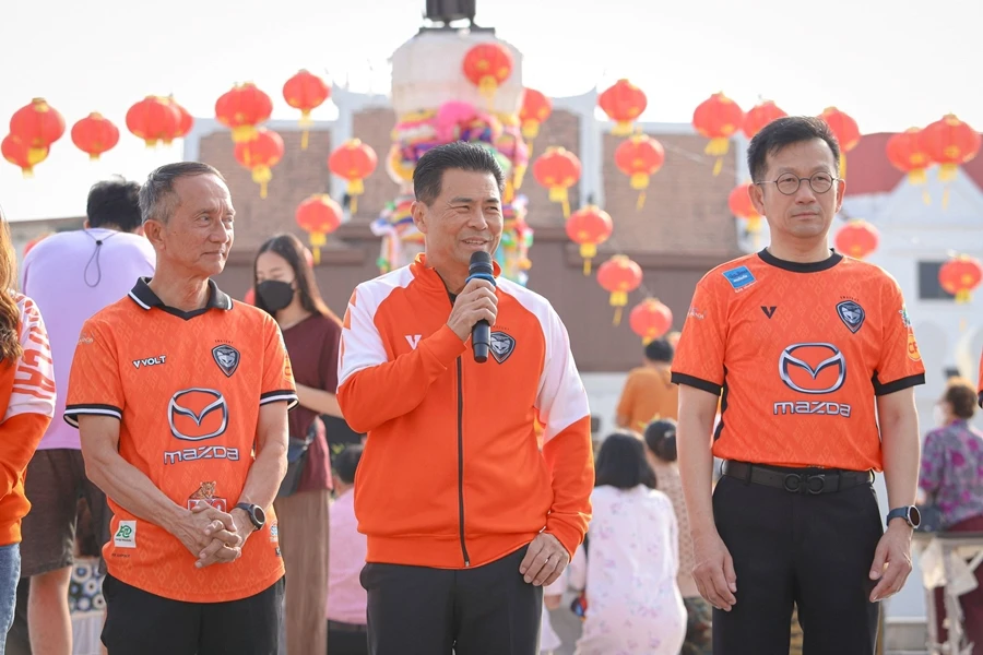 นางสาวอัญรินทร์ วงศ์อัครพัฒนา (ที่3 จากซ้าย) รองประธานฝ่ายรายได้และสิทธิประโยชน์ สโมสรนครราชสีมา มาสด้า เอฟซี, นายวัชรพล โตมรศักดิ์ (ที่4 จากซ้าย) ประธานสโมสรฯ, นายเทวัญ ลิปตพัลลภ (ที่6 จากซ้าย) ประธานบริหารสโมสรฯ, นายสมเกียรติ วิริยะนันท์กุล (ที่6 จากขวา) รองผู้ว่าราชการจังหวัดนครราชสีมา, นายวัชระ เจียรบุญ (ที่5 จากซ้าย) ผู้จัดการทั่วไปแผนกการตลาด, นายอุทัย เรืองศักดิ์ (ที่5 จากขวา) ผู้ช่วยผู้จัดการทั่วไป มาสด้า เซลส์ ประเทศไทย และ นางสาวทัศนียา พัฒนจิตวิไล (ที่3 จากขวา) มาสด้าราชาออโต้เซลส์