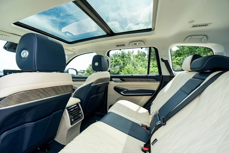 - หลังคาซันรูฟระบบไฟฟ้าแบบพาโนรามิคขนาดใหญ่พร้อมราวหลังคา เพื่อเพิ่มการใช้งานเสาอากาศแบบ Shark Fin