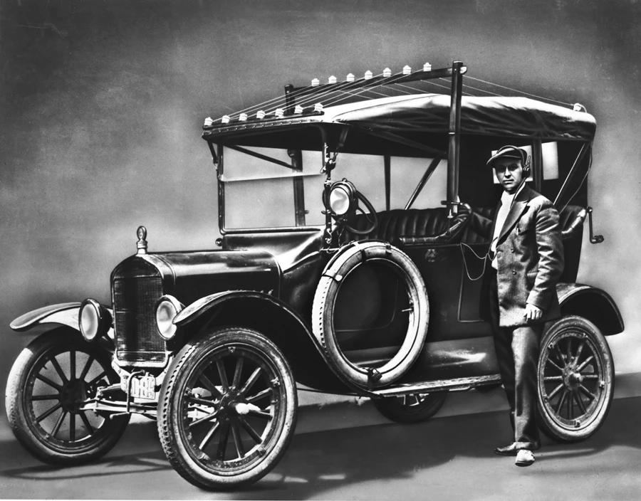 รถซีดาน ฟอร์ด V8 รุ่นปี 1933 หรือปี พ.ศ. 2476 ซึ่งนับเป็นรถคันแรกของฟอร์ดที่มีตัวรับสัญญาณ AM ภายในรถ