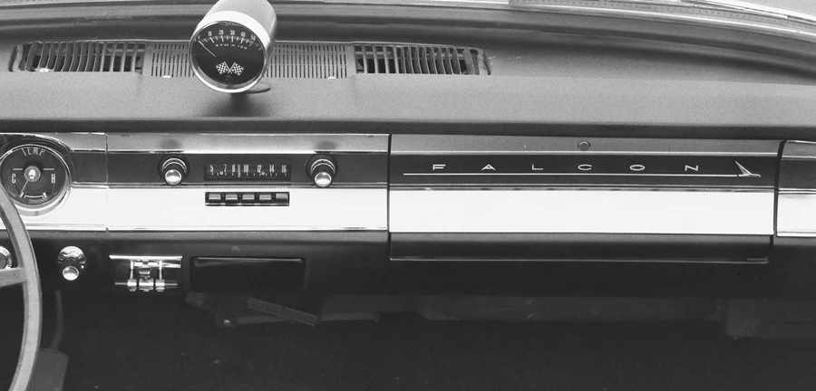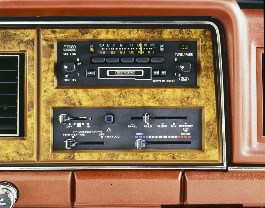 ฟอร์ด ฟอลคอน รุ่นปี 1964 เป็นจุดเริ่มต้นของการออกแบบวิทยุที่คงรูปแบบต่อเนื่องมาหลายทศวรรษ และปี พ.ศ. 2507 นี้เอง ฟอร์ดยังได้เปิดตัววิทยุที่มีเครื่องเล่นเทป 8 แทร็กแบบควอดราโซนิก (quadrasonic) ที่ใช้บนรถฟอร์ดรุ่นยอดนิยมที่เปิดตัวในพ.ศ. 2509 อย่าง มัสแตง ธันเดอร์เบิร์ด และลินคอล์น รุ่นปี 1966