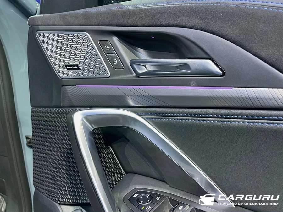 ภายในห้องโดยสารของบีเอ็มดับเบิลยู iX2 xDrive30 M Sport ใหม่ นำเสนอบรรยากาศพรีเมียมทันสมัยพร้อมให้ผู้ขับขี่ได้สัมผัสกับกลิ่นอายความสปอร์ต ภายในตกแต่งด้วยวัสดุตกแต่งแบบอลูมิเนียม พร้อมแถบกราฟิก และเบาะที่นั่งสปอร์ตหุ้มหนัง M Alcantara/Veganza ผสานสีดำ ตัดกับตะเข็บสีน้ำเงิน คอนโซลด้านบนบุด้วยหนัง Sensatec