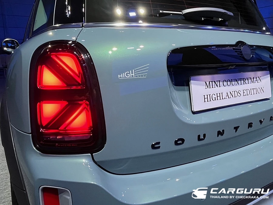 มินิ คูเปอร์ เอส คันทรีแมน Highlands Edition มาพร้อมชุดแต่ง MINI ALL4 รวมถึงสัญลักษณ์ไฮแลนด์ที่โดดเด่นสะดุดตา เพิ่มความพิเศษให้กับการออกแบบที่หรูหราเหนือระดับ มินิ คูเปอร์ เอส คันทรีแมน Highlands Edition ได้รับการออกแบบให้มอบความสะดวกสบายในทุกการเดินทาง พร้อมผจญภัยทุกหนแห่งด้วยฟีเจอร์อเนกประสงค์สุดล้ำ อาทิ ราวหลังคา, ประตูท้ายแบบอัตโนมัติ, และพื้นที่เก็บสัมภาระสูงสุด 1,390 ลิตร ตัวถังภายนอกอวดรูปลักษณ์โฉบเฉี่ยวด้วยการตกแต่งด้วยสีดำ Piano Black โดยดีไซน์ให้เข้ากันอย่างกลมกลืนกับหลังคาและที่ครอบกระจก, ล้ออัลลอยสีดำขนาด 18 นิ้วลาย Pin Spoke พร้อมยางรันแฟลต, ไฟหน้าแบบ LED, และไฟท้ายลาย Union Jack อันเป็นเอกลักษณ์เฉพาะตัวของมินิ