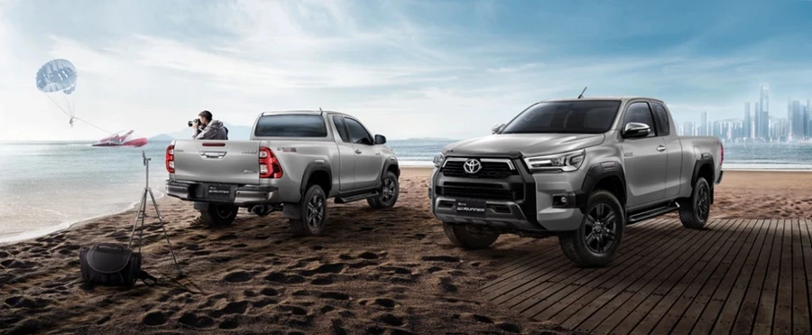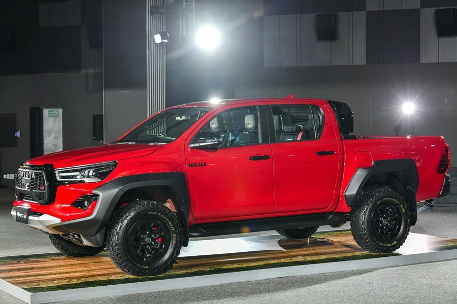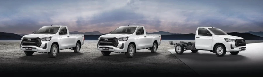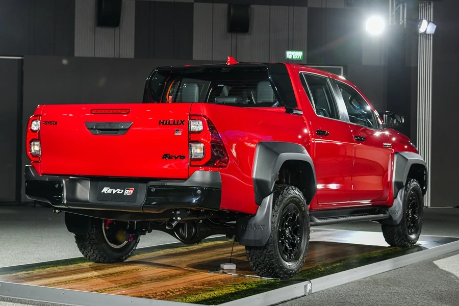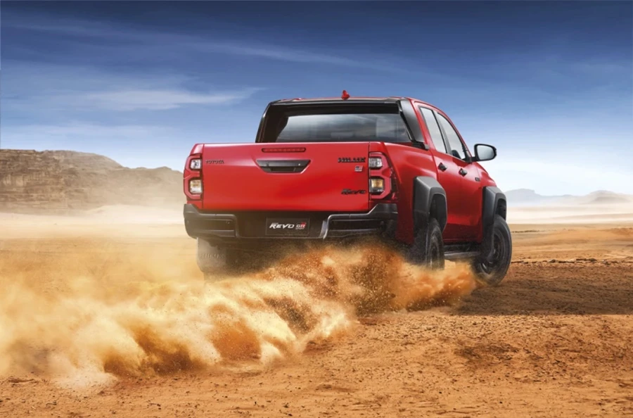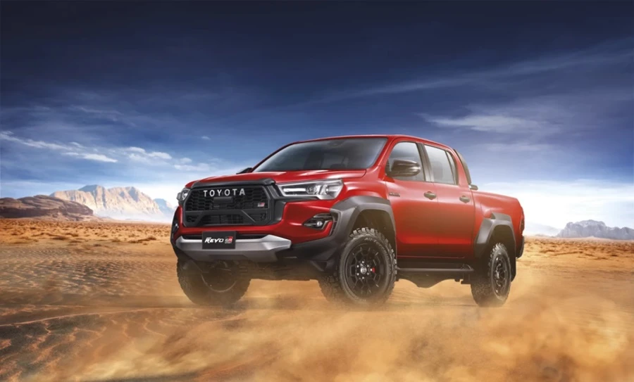 - Hilux Revo GR-Sport 4x4 นิยามความแกร่ง สปอร์ตพรีเมี่ยม กระบะสายพันธ์แกร่งรุ่นเรือธงที่ได้รับแรงบันดาลใจในการออกแบบจากรถแข่งออฟโรดแรลลี่ ด้วยสมรรถนะการขับขี่เป็นเลิศกับเครื่องยนต์ 2.8 GD Super Power ปรับจูนใหม่ 224 แรงม้า แรงบิด 550 นิวตัน-เมตร ปรับจูนช่วงล่าง เพิ่มความกว้างฐานล้อ (wide tread) ด้านหน้าขึ้นอีก 140 มม ด้านหลัง 155 มม และเปลี่ยนเบรกหลังเป็นดิสก์เบรก ช่วยเพิ่มเสถียรภาพในการขับขี่ ยึดเกาะถนนได้ดีมากขึ้น