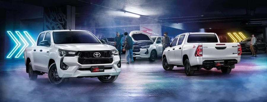 - Hilux Revo Z Edition ทั้งรุ่น Double cab และ Smart cab ด้วยดีไซน์กระจังหน้าใหม่ ไฟตัดหมอก ไฟหน้ารมดำ และวัสดุภายนอกสีดำเมทัลลิกในรุ่น MID ภายนอกโฉบเฉี่ยว ดุดัน ตามคำเรียกร้องจากกลุ่มลูกค้าที่ชื่นชอบการตกแต่งรถ ให้มีสไตล์ เท่ เป็นเอกลักษณ์ มาพร้อมกับระบบความปลอดภัยเพื่อคนไทย ทั้ง VSC และ HAC ในทั้งสองรุ่นย่อย