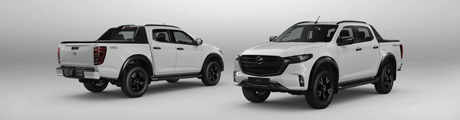 เสริมความแกร่งให้กับดีไซน์ภายนอกด้วยชุดแต่งพิเศษ Black Thunder สีดำเงา ประกอบด้วยชุดแต่งกันชนหน้า สปอร์ตบาร์ กระจกมองข้าง คิ้วตกแต่งซุ้มล้อ มือจับเปิดประตู และล้ออัลลอยขนาด 18 นิ้ว ตอบโจทย์กลุ่มลูกค้าหลักของรถปิกอัพมาสด้าในปัจจุบันที่ต้องการรถปิกอัพสำหรับการใช้งานในชีวิตประจำวัน ตอบสนองไลฟ์สไตล์ที่ทันสมัย และยังสะท้อนบุคคลิกอันโดดเด่นในสไตล์มาสด้าได้อย่างลงตัว