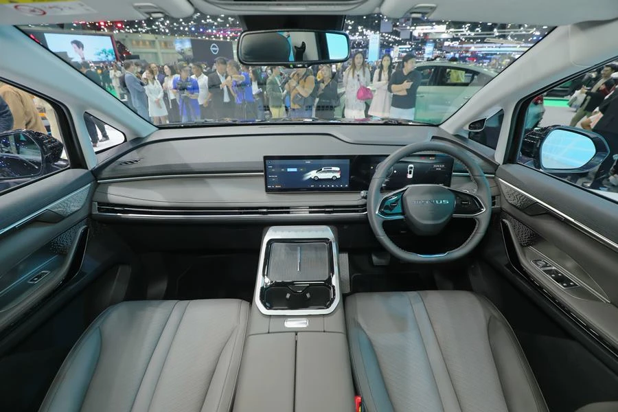 ในงานครั้งนี้ เอ็มจี ได้นำ NEW MG MAXUS 7 มาจัดแสดงให้คนไทยได้สัมผัสกับคันจริงของ E-MPV ไซส์กลาง ขนาด 7 ที่นั่ง มาพร้อมฟังก์ชันและฟีเจอร์ที่ทันสมัย งานดีไซน์ที่โดดเด่นตามแบบฉบับของ MG MAXUS Series ทั้งงานออกแบบและฟังก์ชันการใช้งาน ไม่ว่าจะเป็น ประตูสไลด์ด้านข้างเปิดปิดด้วยไฟฟ้าพร้อมฝาท้ายไฟฟ้า ที่เปิดประตูแบบเก็บซ่อนในตัวรถ หลังคาพาโนรามิกซันรูฟ ภายในดูเรียบและหรู ด้วยโทนสีดำและสีน้ำตาล ดีไซน์คอนโซลหน้าแบบ Dual Layer พร้อมที่วางแก้ว และรองรับการชาร์จแบบไร้สาย เบาะคนขับปรับไฟฟ้า 6 ทิศทาง ห้องโดยสารให้ความสบายที่มากกว่า พร้อมที่นั่งแบบ Captain Seat ในแถวที่ 2 ที่โอบรับกระชับทุกสรีระ นอกจากนี้ ยังช่วยอำนวยความสะดวกสบายในการขับขี่และการใช้งานฟังก์ชันต่างๆ ด้วยหน้าจอแสดงผลอัจฉริยะแบบดิจิตอลขนาด 12.3 นิ้ว เชื่อมต่อกัน รวมถึงระบบเชื่อมต่อมัลติมีเดีย Apple CarPlay และ Android Auto และยังสามารถเปลี่ยนรถให้เป็นแหล่งพลังงานได้ด้วยระบบ V2L ที่สามารถจ่ายกระแสไฟฟ้าระดับ 6.6 kW นอกจากนี้ NEW MG MAXUS 7 ยังเป็นยนตรกรรมที่มีสมรรถนะชั้นเยี่ยม