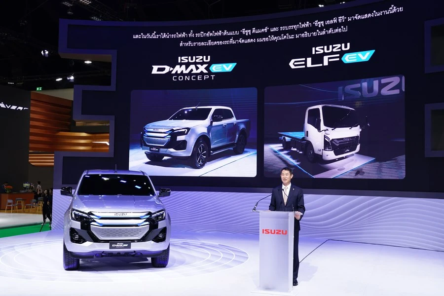 รถปิกอัพไฟฟ้าต้นแบบ อีซูซุ ดีแมคซ์ (Isuzu D-Max EV Concept) รถปิกอัพ 4 ประตู ระบบขับเคลื่อน 4 ล้อแบบ Full Time โดยใช้แพลตฟอร์มเดียวกันกับรถปิกอัพเครื่องยนต์ดีเซล ชุดมอเตอร์คู่และเฟืองท้าย eAxle พัฒนาขึ้นใหม่ทำงานร่วมกันทั้งด้านหน้าและด้านหลัง ผสานกับช่วงล่างด้านหลังใหม่หมดแบบ De-Dion มั่นใจบนทุกสภาพถนน เหมาะสมกับการใช้งานของรถปิกอัพ สร้างดุลยภาพในการขับขี่ทั้งความนุ่มนวล และความสามารถในการบรรทุกอันยอดเยี่ยม จุดเด่นคือ ใช้มอเตอร์ไฟฟ้าคู่ให้กำลังรวมสูงสุด 130 กิโลวัตต์ แรงบิดรวมสูงสุด 325 นิวตัน-เมตร การออกแบบโครงสร้างตัวถังที่แข็งแกร่งช่วยเพิ่มความสามารถในการลากจูงได้ มีแผนจะเริ่มผลิตเพื่อส่งออกอย่างเป็นทางการจากฐานการผลิตประเทศไทยในปี 2568 และเปิดตัวในประเทศภาคพื้นทวีปยุโรปบางประเทศ เช่น นอร์เวย์ ในปี 2568 จากนั้นมีกำหนดการจะเปิดตัวในสหราชอาณาจักร ออสเตรเลีย ไทย ตลอดจนประเทศหรือภูมิภาคอื่น ๆ เป็นลำดับถัดไป ขึ้นอยู่กับความต้องการของตลาดและความพร้อมของสาธารณูปโภคด้านสถานีชาร์จรถไฟฟ้า