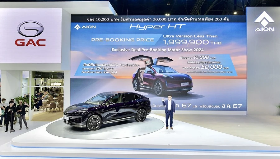 GAC AION ขนทัพรถยนต์ไฟฟ้า AION Y Plus และ AION ES เข้าร่วมงาน Motor Show 2024 พร้อมเปิดตัว Hyper HT เอสยูวีไฟฟ้าลักชัวรี่ระดับไฮเอนด์อย่างเป็นทางการ นำเสนอทางเลือกที่เหนือกว่าสำหรับผู้บริโภคชาวไทย ด้วยความหรูหราระดับพรีเมียม ดีไซน์ล้ำสมัย พร้อมเทคโนโลยีและนวัตกรรมอัจฉริยะ