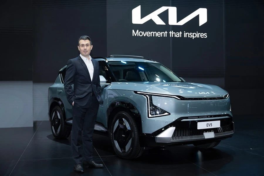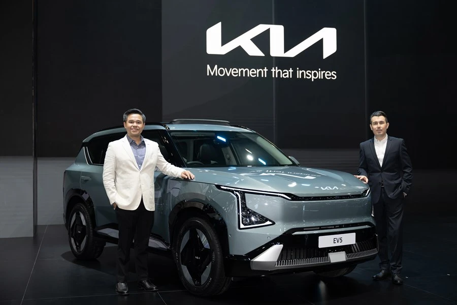 บริษัท เกีย เซลส์ (ประเทศไทย) จํากัด เร่งเครื่องธุรกิจสู่ยุคยานยนต์ไฟฟ้าด้วยการเปิดตัว The Kia EV5 ครบไลน์อัปอย่างเป็นทางการ ซึ่งเป็นการเปิดตัวครั้งแรกของรถรุ่นนี้ในเอเชียแปซิฟิก ในงาน บางกอก อินเตอร์เนชันแนล มอเตอร์โชว์ ครั้งที่ 45 ซึ่งจัดขึ้นในกรุงเทพมหานคร โดย The Kia EV5 เป็นรถยนต์เอสยูวีขนาดกลางไฟฟ้า 100% ที่ให้ความอเนกประสงค์อย่างเต็มรูปแบบรุ่นแรกในประเทศไทย ตอกย้ำความมุ่งมั่นของบริษัทฯ ในการเร่งตอบรับกระแสความนิยมของรถยนต์พลังงานไฟฟ้าที่เพิ่มขึ้นด้วยการนำเสนอไลน์อัปยานยนต์ไฟฟ้าที่มีความหลากหลายให้กับผู้บริโภคชาวไทย ตั้งเป้าเจาะกลุ่มคู่รักวัยมิลเลนเนียลและกลุ่มครอบครัวสมัยใหม่ ด้วยจุดเด่นแห่งยุคใหม่ของการเดินทางด้วยรถยนต์ไฟฟ้าที่มาพร้อมการออกแบบอันโดดเด่นในสไตล์รถเอสยูวี ผสานความคล่องตัวและความสะดวกสบายที่เหนือชั้นเข้ากับเทคโนโลยีขั้นสูง สมรรถนะแรงเต็มอัตรา มาพร้อมฟีเจอร์ความปลอดภัย และมีระยะขับขี่ได้ไกลที่สุดในเซกเมนต์เดียวกัน