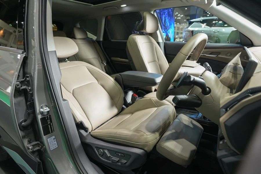 นอกจากนี้ The Kia EV5 ยังมาพร้อมตัวเลือกการปรับที่นั่งอันหลากหลาย และวัสดุหุ้มเบาะโดยสารในรูปแบบต่างๆ ทั้งวัสดุหุ้มผ้ารีไซเคิลจากพลาสติก PET และหนังสังเคราะห์ Bio-PU ที่เป็นมิตรต่อสิ่งแวดล้อม เพื่อตอบสนองความต้องการของครอบครัวยุคมิลเลนเนียล โดยในรุ่น Earth Exclusive AWD มีเบาะนั่งสำหรับผู้ขับขี่แบบ Relaxation Seat ที่มาพร้อมฟังก์ชันการนวดถึง 4 รูปแบบ ระบบทำความอุ่น และระบายอากาศ 3 ระดับ รวมถึงหมอนรองน่องแบบปรับด้วยไฟฟ้า