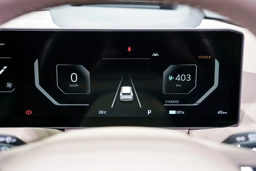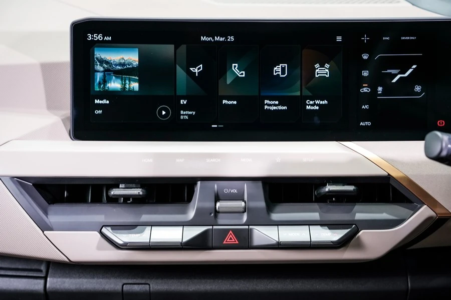 หน้าจออินโฟเทนเมนท์แบบสัมผัสขนาด 12.3 นิ้ว, จอแสดงผลแบบคลัสเตอร์ขนาด 12.3 นิ้ว และจอแสดงผลสำหรับระบบปรับอากาศภายในห้องโดยสารขนาด 5 นิ้ว ที่ให้ข้อมูลและเนื้อหาที่ครอบคลุมแก่ผู้ขับขี่เพื่อสร้างประสบการณ์แบบอิมเมอร์ซีฟที่เหนือชั้น ด้วยเมนูคำสั่งที่ไม่ซับซ้อน ช่วยให้สามารถใช้งานฟังก์ชันต่างๆ ที่เกี่ยวกับ EV ได้ง่ายยิ่งขึ้น อีกทั้งยังช่วยให้ผู้ขับขี่สามารถตรวจสอบระยะและสถานะการชาร์จไฟฟ้าได้อย่างรวดเร็วผ่านการมองเพียงครั้งเดียว