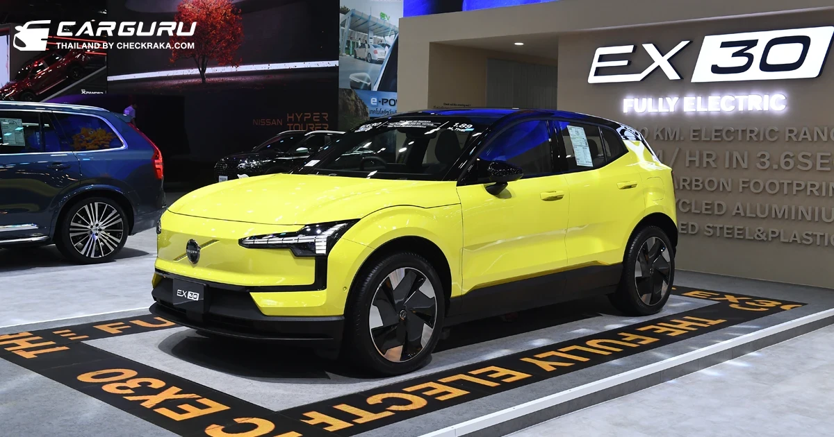- Volvo EX30 รถไฟฟ้า SUV รุ่นใหม่ที่สร้างคาร์บอนฟุตปริ้นน้อยที่สุดที่เคยมีมาในรถวอลโว่ มาพร้อมเทคโนโลยีความปลอดภัยล้ำสมัย พร้อมตัวเลือกพลังการขับเคลื่อนทั้งแบบมอเตอร์เดี่ยวและมอเตอร์คู่จึงให้พลังขับสูงสุดถึง 428 แรงม้า, อัตตราเร่ง 0-100 กม./ชม. ใน 3.6 วินาที, แบตเตอรี่ขนาด 69kWh ให้ระยะทางสูงสุดถึง 540 กม.*