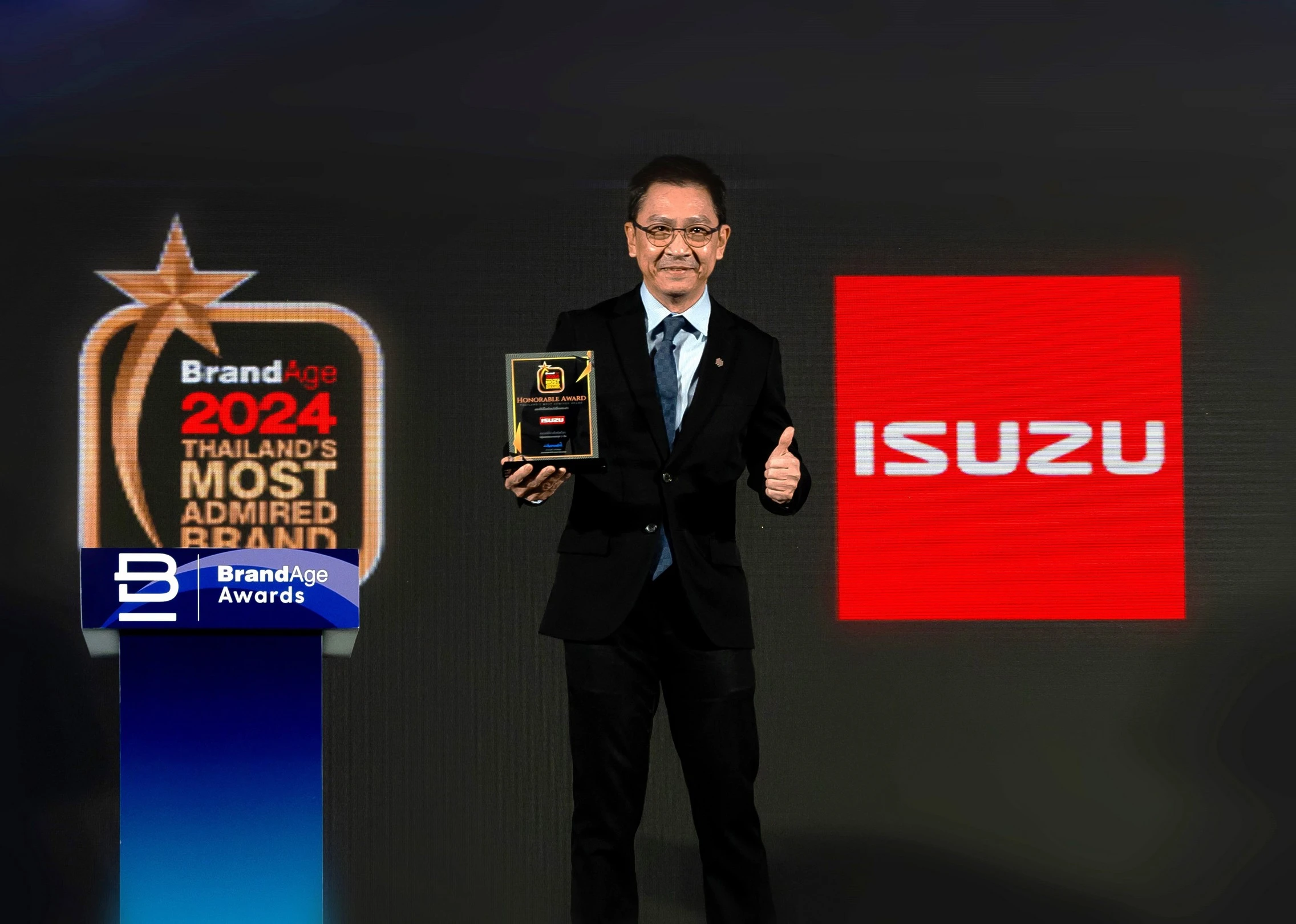 นอกจากนี้ อีซูซุ ยังได้รับรางวัล “แบรนด์รถปิกอัพที่น่าเชื่อถือสูงสุดประจำปี 2567” (2024 Thailand's Most Admired Brand) ซึ่งเป็นผลจากการสำรวจและวิจัยความน่าเชื่อถือและไว้วางใจจากผู้บริโภคทั่วประเทศ โดยนิตยสาร BrandAge ซึ่ง “แบรนด์อีซูซุ” ได้รับคะแนนความน่าเชื่อถือเป็นอันดับ 1 ในหมวดยานยนต์ กลุ่มรถกระบะบรรทุก 1 ตัน โดยมี คุณสมคิด แสงอารยะกุล กรรมการ บริษัท ตรีเพชรอีซูซุเซลส์ จำกัด รับมอบรางวัล