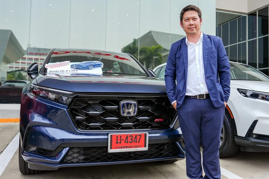 คุณชลิต แสงประสิทธิ์ ลูกค้าที่ซื้อ ฮอนด้า ซีอาร์-วี และได้รับรางวัล รถยนต์ฮอนด้ารุ่น ซีอาร์-วี เกรด e:HEV RS 4WD สีน้ำเงินแคนยอนริเวอร์ (เมทัลลิก) กล่าวว่า “ผมรู้สึกดีใจมาก ๆ ไม่น่าเชื่อว่าตนเองจะมีโอกาสได้รางวัลใหญ่ ซึ่งครั้งนี้เป็นครั้งแรกของตนที่ซื้อรถยนต์ฮอนด้า จากคำแนะนำของเพื่อน ๆ ที่ใช้รถยนต์ฮอนด้า ทุกคนพูดเป็นเสียงเดียวกันว่าใช้ดี จากที่ตนได้ซื้อและใช้งาน ฮอนด้า ซีอาร์-วี อี:เอชอีวี รู้สึกประทับใจในสมรรถนะการขับขี่ที่ดี นุ่มสบาย ขับขี่ได้อย่างมั่นใจและปลอดภัย อีกทั้งเหมาะกับการใช้งานในครอบครัว”