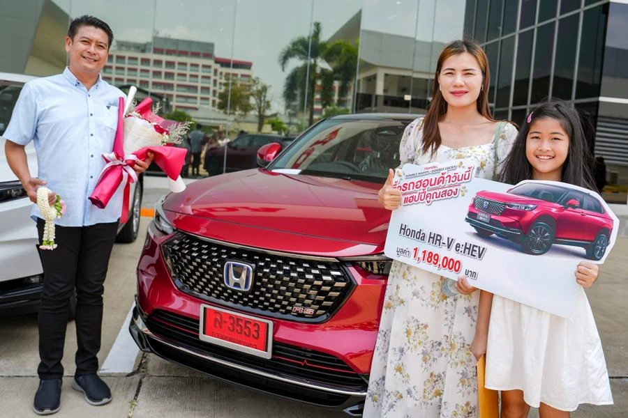 คุณปรีชาณรงค์ สว่างโยธิน ลูกค้าที่ซื้อ ฮอนด้า เอชอาร์-วี อี:เอชอีวี และได้รับรางวัล รถยนต์ฮอนด้ารุ่น เอชอาร์-วี อี:เอชอีวี เกรด e:HEV RS สีแดงอิกไนต์ (เมทัลลิก) หลังคาสีดำ (ทูโทน) เผยว่า “การที่ได้เป็นผู้โชคดีในครั้งนี้ ถือว่าเป็นเรื่องที่ไม่คาดคิด เพราะ ครั้งนี้เป็นครั้งแรกที่ผมซื้อรถยนต์ฮอนด้า จากความชอบส่วนตัวที่มีต่อรถยนต์ฮอนด้าและข้อมูลจากคนรอบข้าง ผมจึงตัดสินใจซื้อ ฮอนด้า เอชอาร์-วี อี:เอชอีวี โดยประทับใจดีไซน์ที่สวยงาม การขับขี่ที่นุ่มนวลและประหยัดน้ำมัน พร้อมด้วยฟังก์ชันการใช้งานที่ครบครันและบริการหลังการขายที่ดีเยี่ยม”