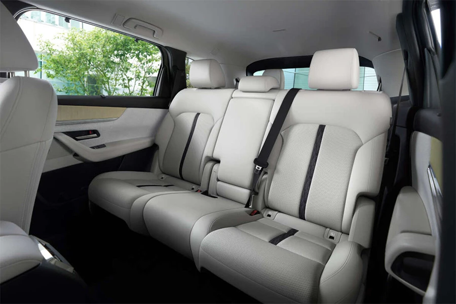 สำหรับเบาะนั่งแถวที่ 2 เราจะได้ระยะการเลื่อนหน้า-หลังถึง 120 มม. และสามารถปรับเบาะเอนได้ตั้งแต่ 15 -33 องศา โดย Mazda เพิ่มพื้นที่บริเวณไหล่เป็น 1,476 มม. (มากกว่า CX-60 35 มม.) มีพื้นที่เหนือศรีษะที่ 996 มม. (มากกว่า CX-60 12 มม.) และเบาะแถวที่ 3 สามารถรองรับผู้โดยสารที่มีความสูง 170 ซม. ได้เลย