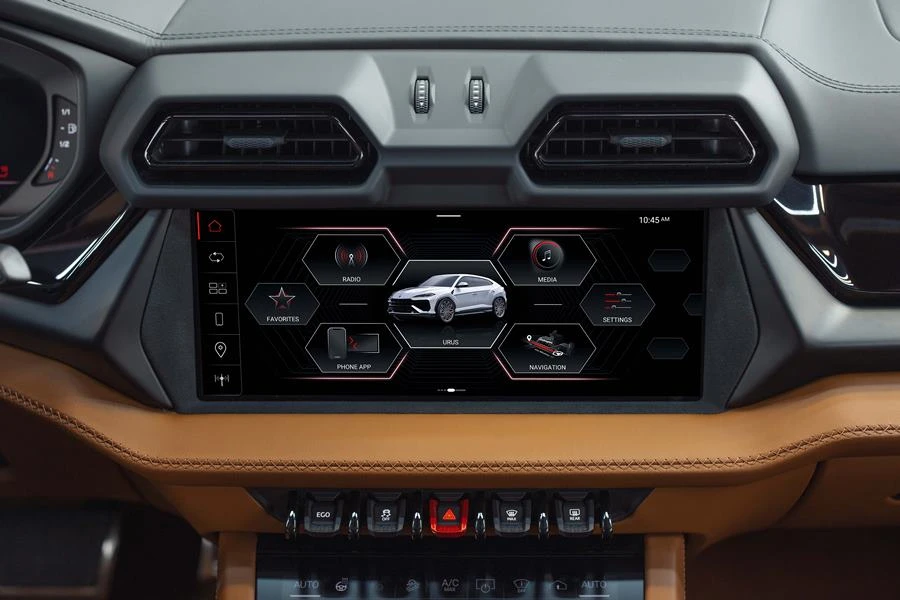 หน้าจอขนาดใหญ่ 12.3 นิ้วซึ่งใหญ่กว่ารุ่นเดิม ถูกติดตั้งไว้บริเวณกลางแผงหน้าปัดและมอบการแสดงผลกราฟิก Human Machine Interface (HMI) เวอร์ชันใหม่ที่ใช้งานได้ง่ายดายและเป็นธรรมชาติมากขึ้นเหมือนที่พบได้ในรุ่น Revuelto ทีมนักออกแบบ Lamborghini Centro Stile ยังให้ความสำคัญกับการออกแบบท่อลม โดยตกแต่งด้วยวัสดุอลูมิเนียมเคลือบผิวในรูปทรงตัว Y อันเป็นเอกลักษณ์ และยังหุ้มส่วนบานตกแต่ง แผงหน้าปัด เบาะนั่งด้วยวัสดุใหม่ นอกจากนี้ ยังออกแบบแผงปุ่มกดแบบกลไกเพื่อให้ได้สัมผัสของการกดที่สมจริง