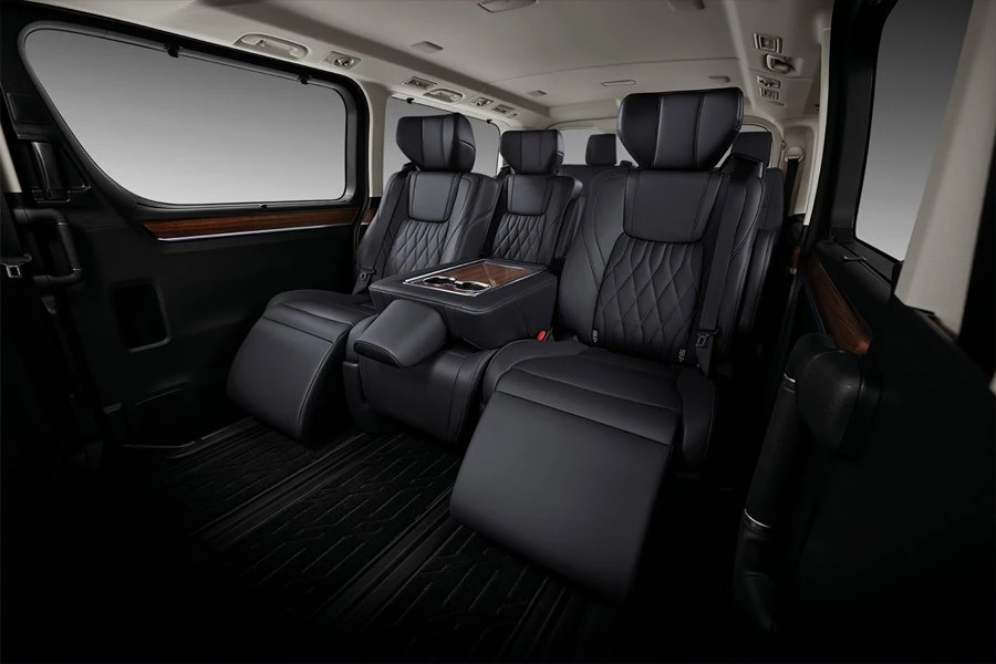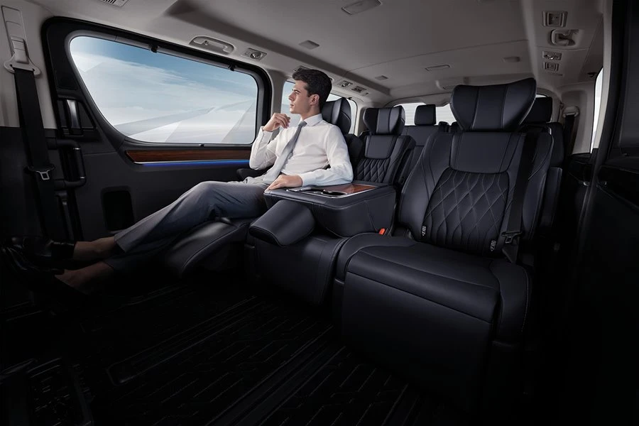 - ส่วนเบาะผู้โดยสารด้านหลังในแถวที่ 1 – 2 จะเป็นที่นั่งแบบ Captain Seats 4 ที่นั่ง และสามารถปรับได้ 4 ทิศทาง พร้อมหัวหมอนแบบ Butterfly ที่รองน่อง และระบบบริหารหลังแบบไฟฟ้า (ในรุ่น Grande) ทั้งนี้ในแถวที่ 1 ยังมาพร้อมกับเบาะผู้โดยสารตำแหน่งกลางและหัวหมอน ที่สามารถพับเป็นที่วางแขน และที่วางแก้วน้ำ ทำให้การเดินทางเป็นไปอย่างสะดวกสบาย